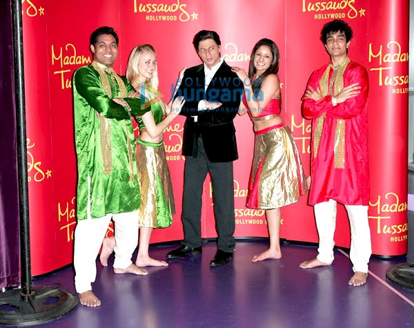 's Wax statue pictures where models are celebrating the event while Unveiling of wax figure of Shahrukh Khan at